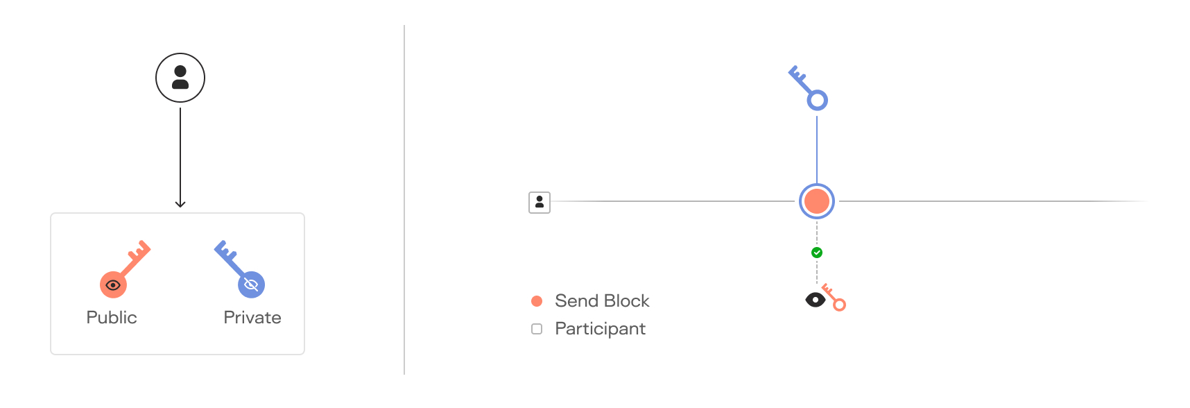 In the world of digital transactions, a key pair is like your personal lock and key set. It consists of a public key that can be freely shared, and a private key that is kept secret. On the Keeta Network, when a user makes a transaction, they use their private key to 'sign' it, creating a unique stamp. Anyone can then use your public key to verify that you indeed created the unique stamp, similar to how a bank verifies your signature on a check, but far more secure and impossible to forge.